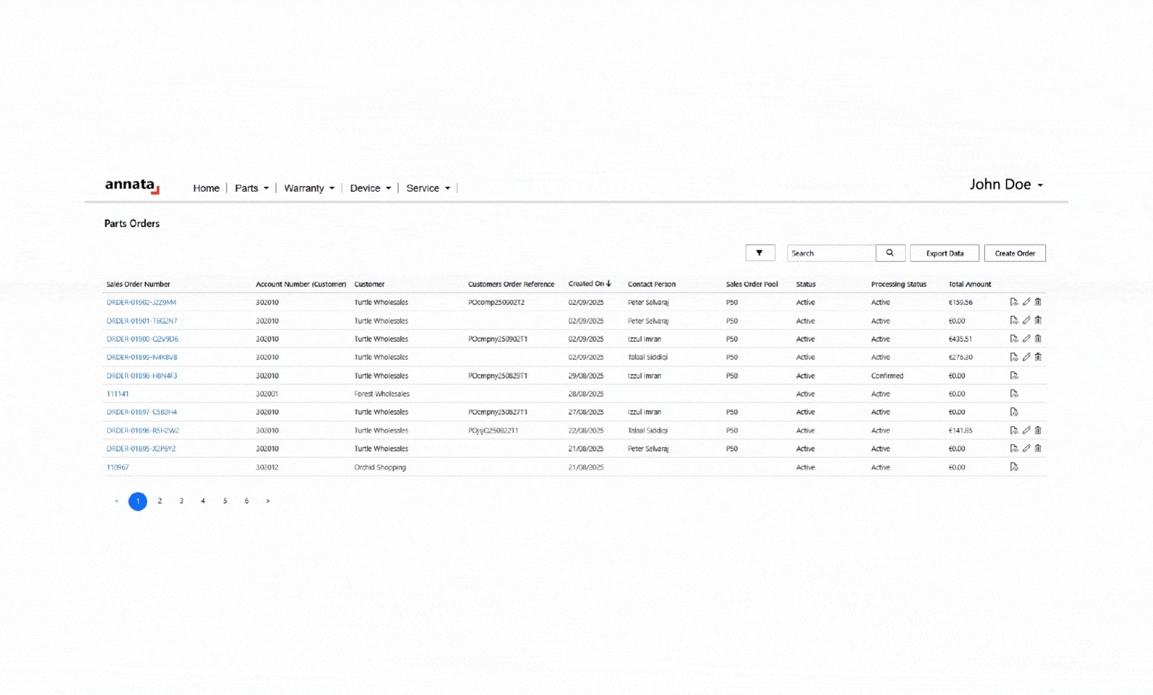Parts orders